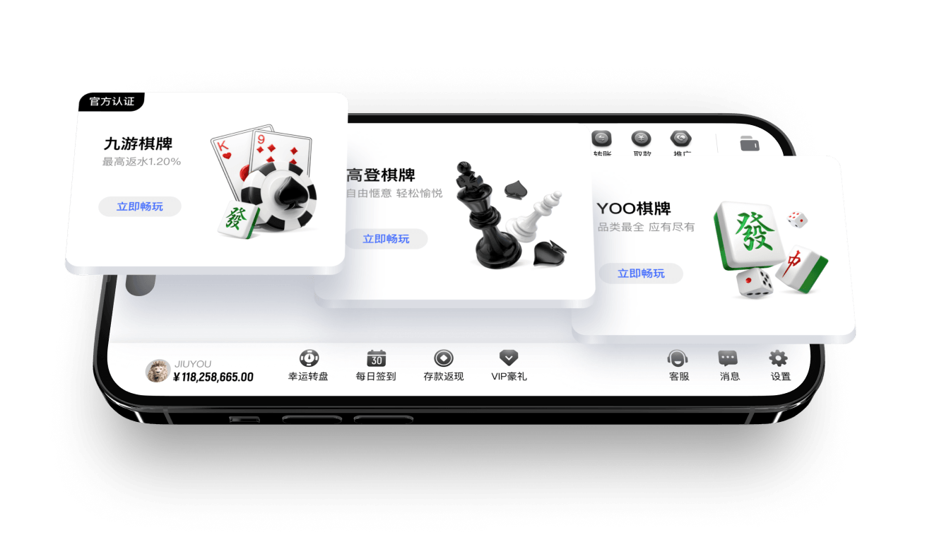 提供市面上热门游戏种类,选择全面多元,应有尽有玩家能不断游戏不感无趣!抢庄牛牛、龙虎斗,多款棋牌任君选,好友相约竞技,游戏改变生活。